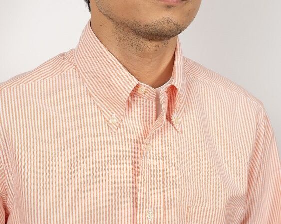 厚すぎず薄すぎないシーズン通して着用できるオックス生地は、23ss新色といしてオレンジストライプをご用意。