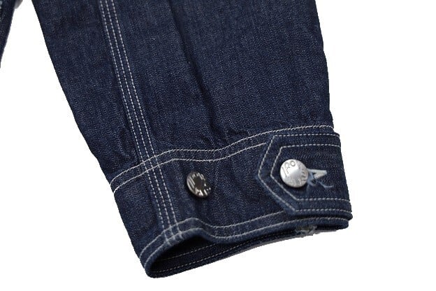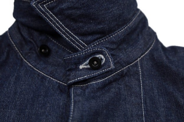 スタイルは台襟の高い、特徴的な襟を採用。また縫製は珍しい三本針にて丁寧に縫製。