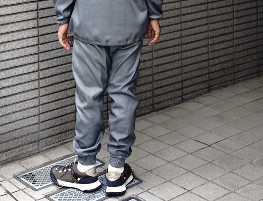 スウェットパンツをモチーフとしたレザーなので、ウエストと裾にはリブを使用。こちらも同様のレザーを使用したリブなので、雰囲気は抜群。