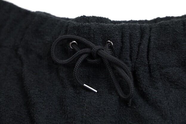 素材にコットンポリ混紡のパイル地を使用したショートパンツ。両面がパイルとなっており