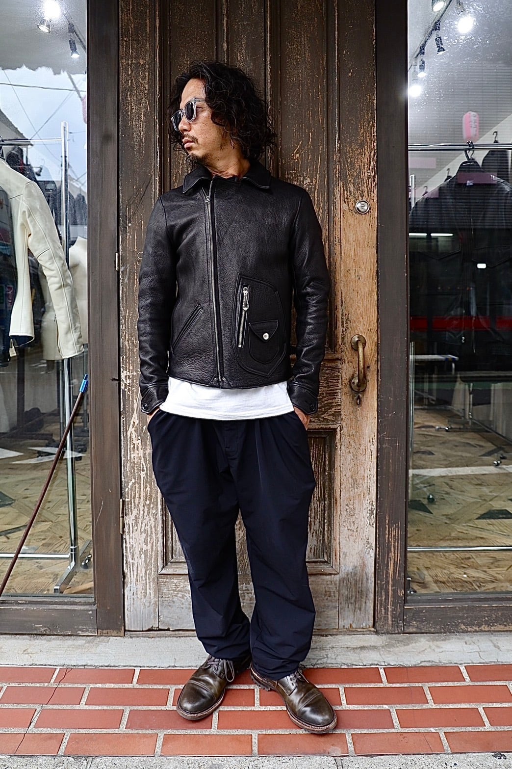 美しいダブルレザージャケットのスタイリングをお楽しみ頂けます。