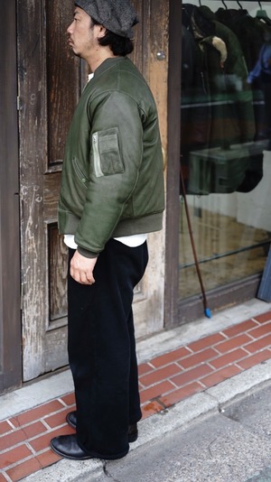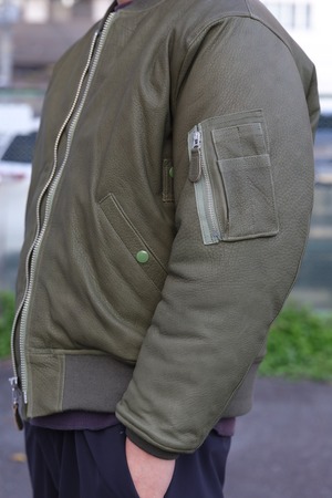 2024AWではフライトジャケットの代名詞とも言える、初期型MA-1をディアスキンレザーで
