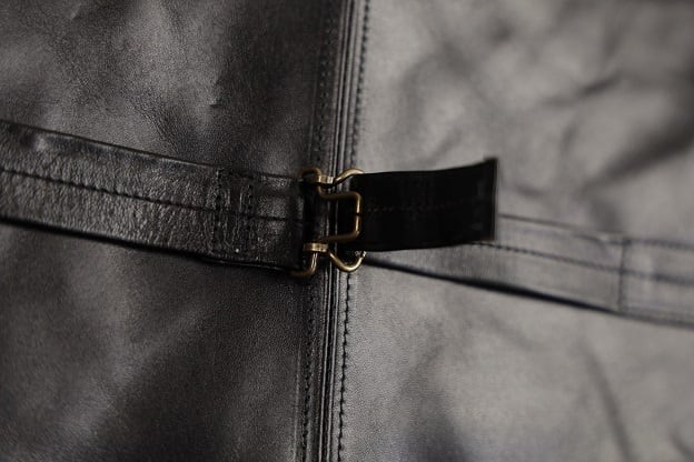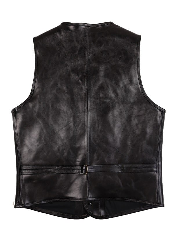 素材にホースハイドを使用した、4pocketのレザーベスト。フルベジタブルタンニン鞣しでピグメントフィニッシュされた1.3㎜厚の革を用いている事で、着込むとシワやアタリが際立ち、更にそこから茶芯が現れます。しなやかな革なので最初から身体に馴染みよく