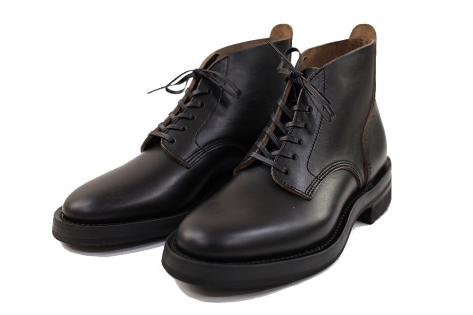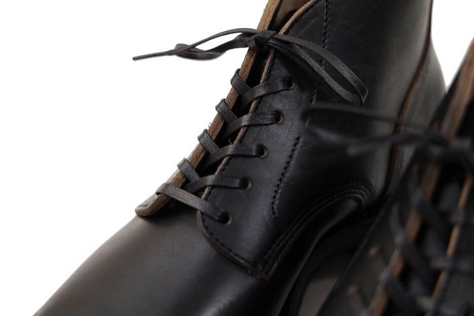 履きこむとつま先までしっかりと履きシワが入るのが特徴。更に極厚の一枚革を使用したホースバットレザーは履き始めは硬い革ですが、履きこんだ無骨な表情は本製品ならではの大きな魅力。丈夫で天候に関係なくご使用頂けるので、長くご愛用頂けます。