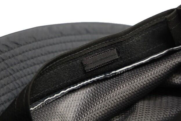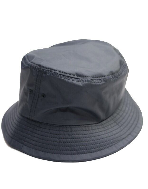 バケットハットの形状でツルっとしたナイロン素材を使用。裏側にはメッシュ素材を