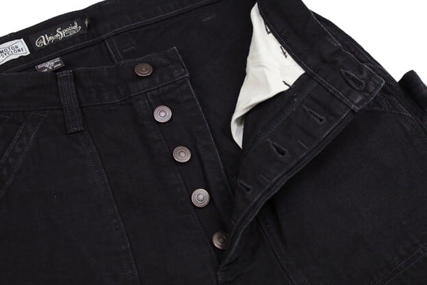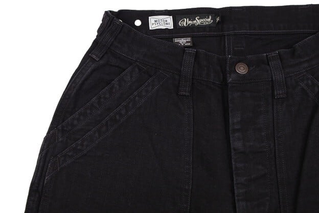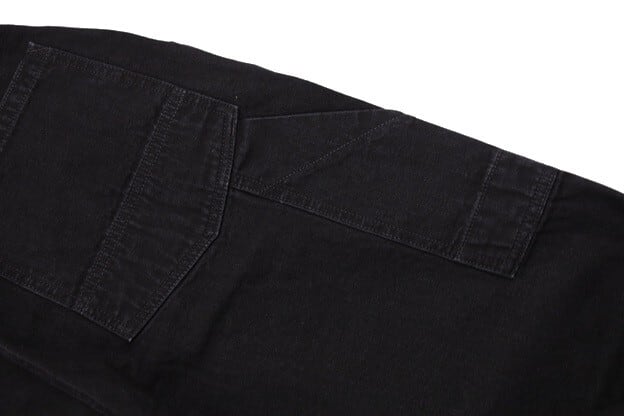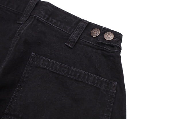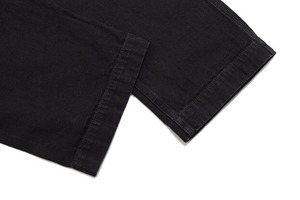 頑強で無骨な表情が魅力。同ブランド601RB同様のタテ糸がロープ染色ブラック、ヨコ糸はチーズ染色のブラックで染められており、経年による褪色、穿き込む事で更なる表情の変化をお楽しみ頂けます。