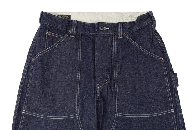 最大の特徴はデニム生地が腿~膝にかけて二重に当てられたダブルニー仕様。背面はハンマーループに左右ツールポケット、主要部の縫製にトリプルステッチを施すなど、屈強なワークパンツらしさが随所に感じられる製品となっています。