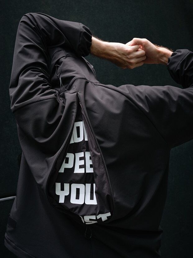 ベスト着用時は背面のコンシールジップを開ける事で背面に余裕が生まれ、尚且つ