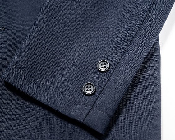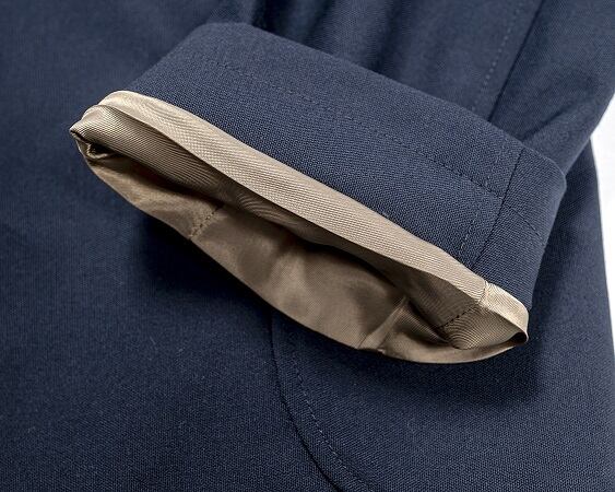 袖裏にはポリエステル100を使用、本作のボタンには練りボタンが使用されています。