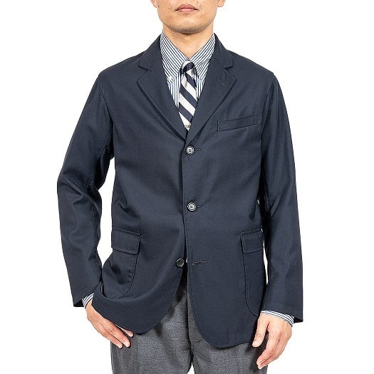 三つボタン、上二つがけ。胸箱ポケット。フラップ付のパッチポケットにセンターベント仕様。紺ブレ、アイビージャケットの定番と言えるスタイルの本製品は