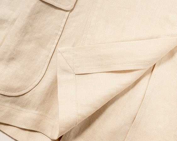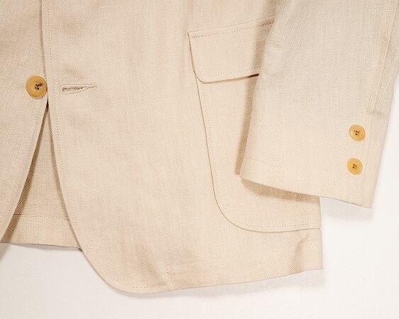 製作されたリネンへリンボンのジャケットとなります。